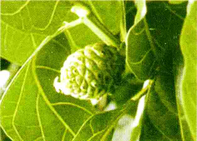 Le noni (Morinda Citrifolia) est un arbuste ou petit arbre aux branches rigides à texture grossière portant des feuilles persistantes, ovales, vernissées et sombres. De petites fleurs blanches et odorantes éclosent hors de boutons en grappe, qui portent des fruits de couleur blanc crème et charnus lorsqu'ils sont mûrs, ressemblant à un petit fruit d'arbre à pain ou à une petite pomme de terre. La chair du fruit est typiquement amère et lorsqu'elle est entièrement mûre, elle dégage une odeur très caractéristique. L'arbuste peut atteindre une hauteur de 4,50 m à 6 m et produit des graines légères qui peuvent flotter pendant des mois dans la flore océanique. Le bois de l'arbre est réputé pour sa jolie fibre dure et résistante au sel.